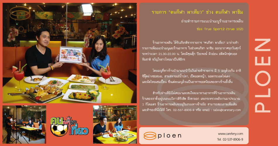 ร้านอาหารเพลิน ได้รับเกียรติจากรายการ “คนกีฬา พาเที่ยว” มาถ่ายทำรายการเพื่อแนะนำเมนูยอดนิยมและร้านอาหาร ในช่วงคนกีฬา พาชิม